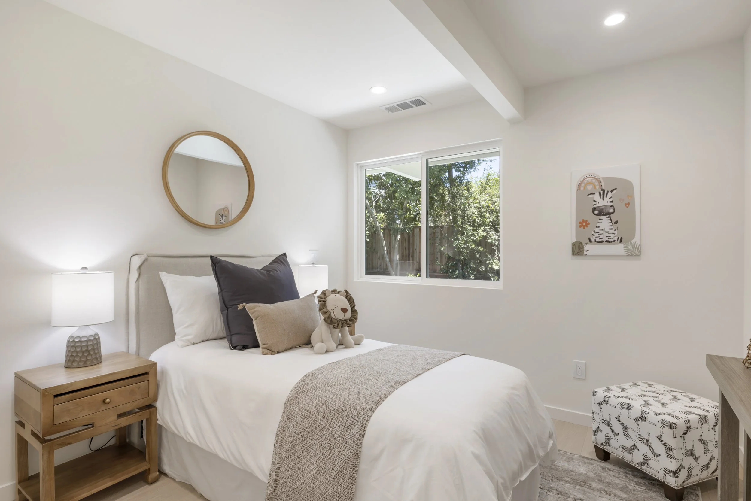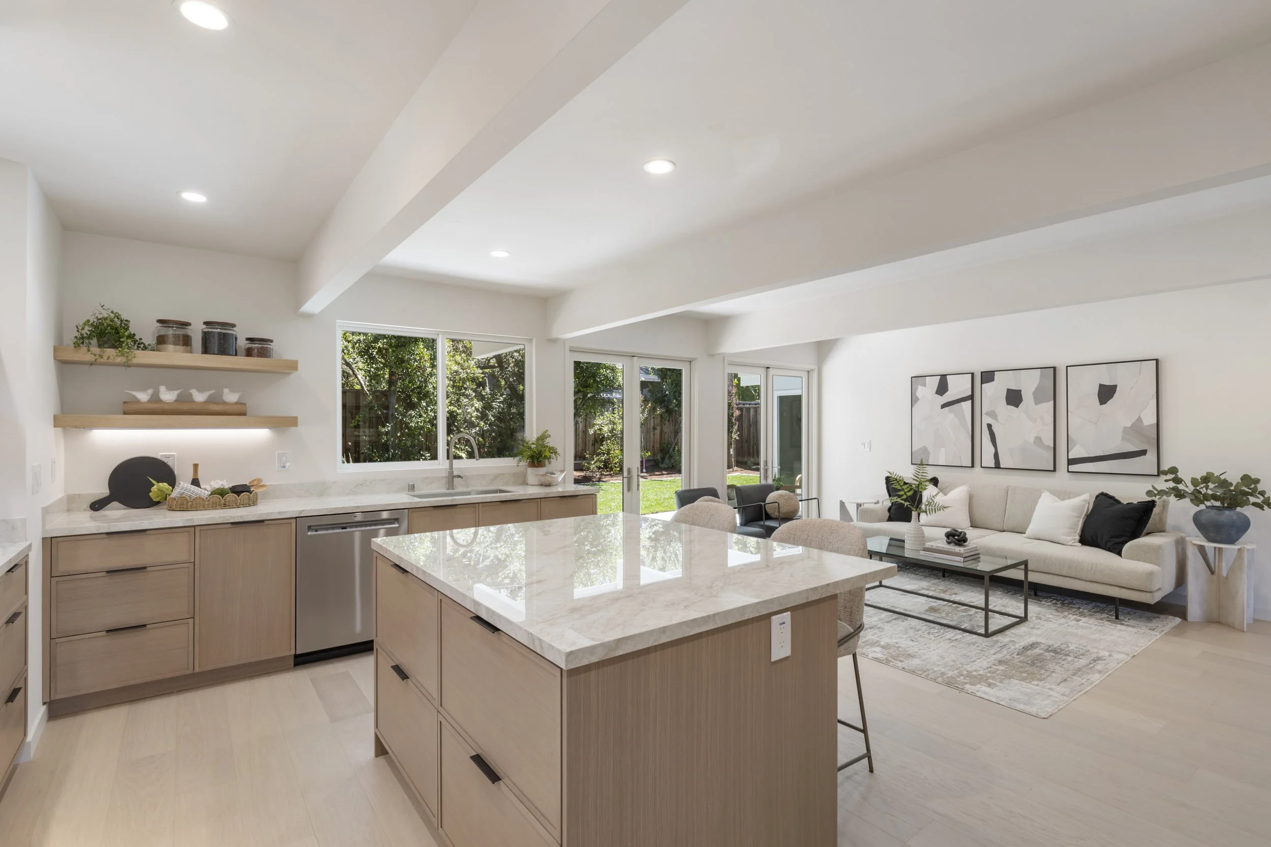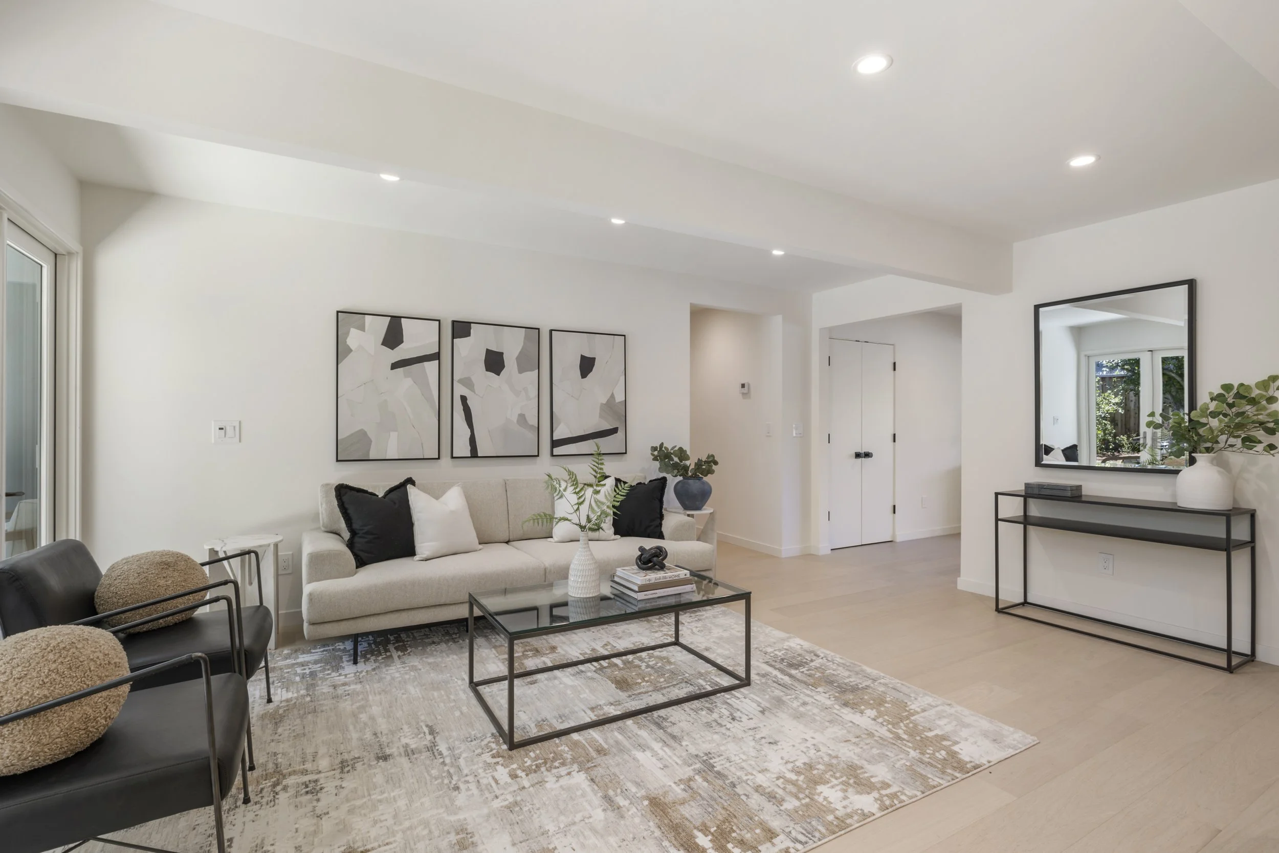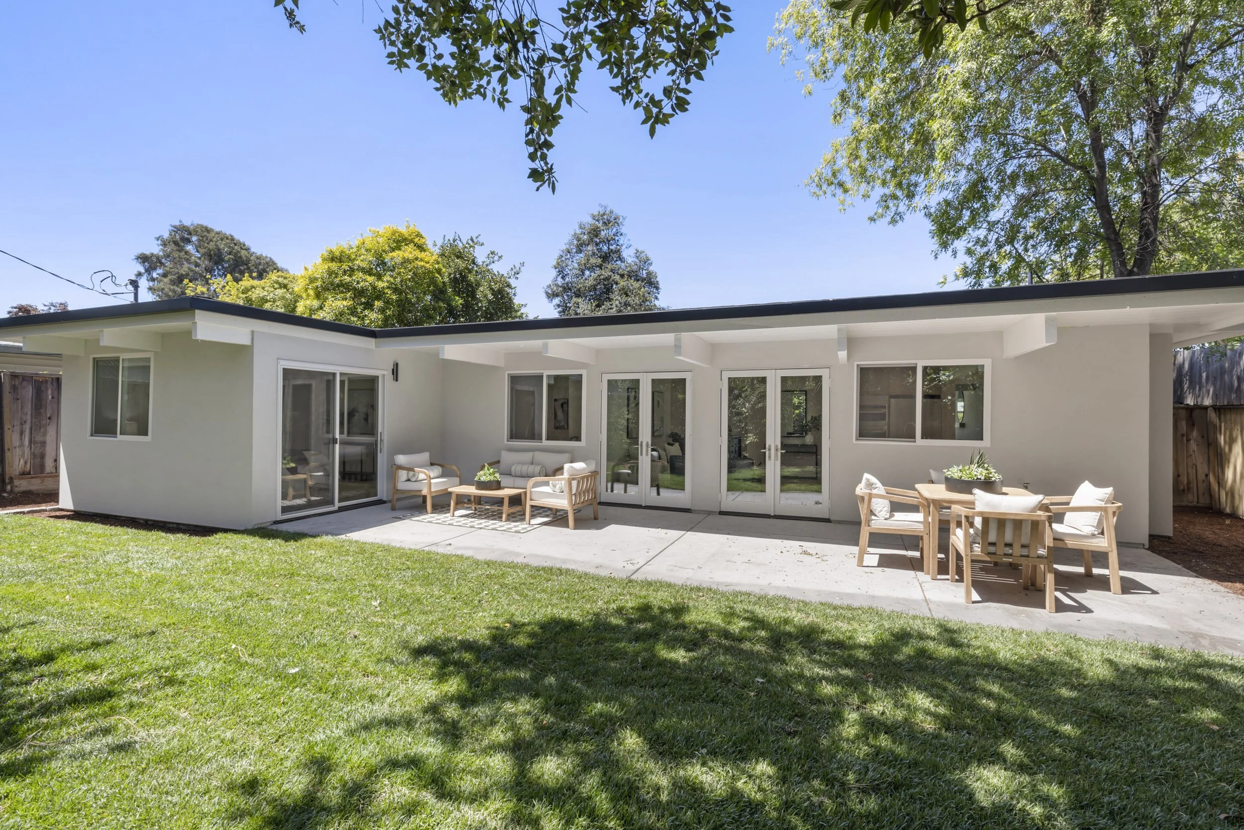Step into this like-new, Eichler-inspired gem in Charleston Gardens, where a top-to-bottom renovation leaves nothing to be desired. Literally rebuilt from the ground up, this home features all new essential systems including drainage and water lines, all new electrical wiring with a 200-amp panel, and double-pane windows alongside new stucco, roof, central heat pump and air-conditioning and landscaping. Inside, you'll find a sleek new kitchen and bathrooms, hardwood floors, and a modern gas fireplace, creating a seamless blend of classic design and modern comfort. Open kitchen/family room, separate living/dining room, large glass windows from every room and separate mud room and laundry. Walk to Mitchell Park and library, Cubberley Community Center, shopping and so much more!
